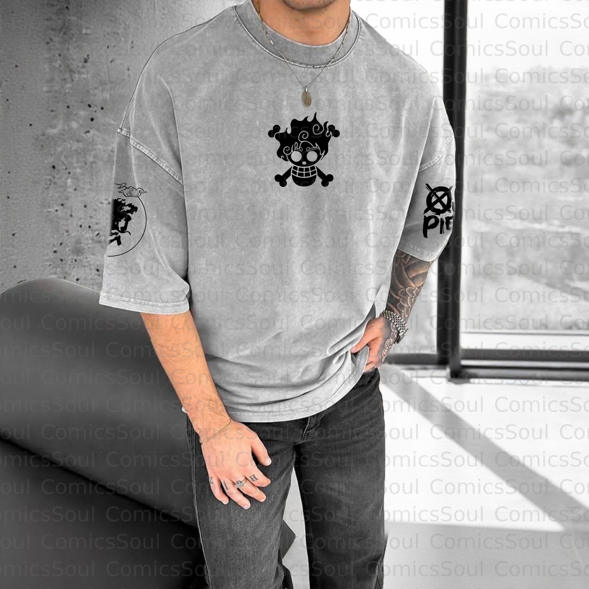 Unisex Anime Inspired Vintage Washed T-Shirt